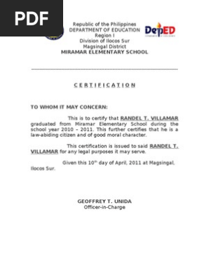 Equity, compliance and title ix; As a follow up to the never ending query about the certificate of good moral character, above and below are photos of samples from barangay, school, and work. Republic of the philippines department of education region iii.